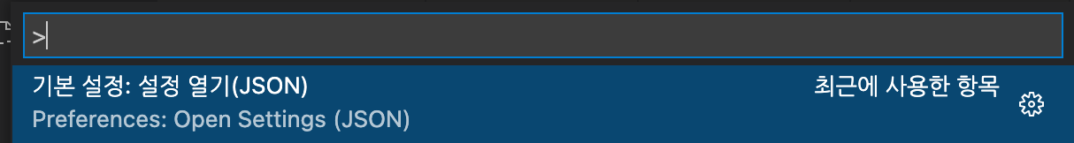 VSCode에서 command+shift+p(윈도우: ctrl+shift+p)를 누르고 아래 설정 파일로 들어간다.