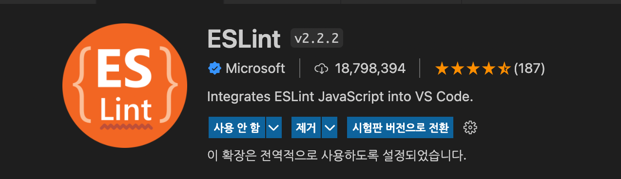 CRA로 생성된 프로젝트는 안에 ESLint가 자동으로 들어간다. 추가로 ESLint를 설치하면 에러가 나니 주의!