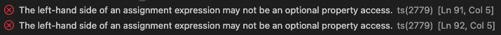 The left-hand side of an assignment expression may not be an optional property access. ts(2779)