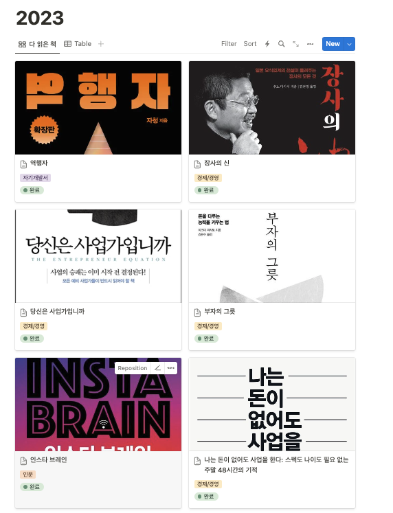 회사를 그만두고 책은 하루에 조금씩 매일 읽었다 처음에는 집중하는 게 힘들어 한 장 넘기기도 힘들었는데 인간은 적응의 동물이다. 계속 읽으니 점점 읽는 속도도 빨라지고 책을 읽었다는 사실이 보람찼다 ㅎㅎ 예전에는 책을 읽어도 따로 독후감은 작성하지 않았는데 책을 읽고 다 읽었다~하고 끝내면 나중에 그 책이 무슨 내용이었는지.. 하나도 기억이 안 났다. 그래서 요즘엔 노션에 책을 읽고 마음에 드는 구절이나 간단하게 감상문을 작성하고 있다!