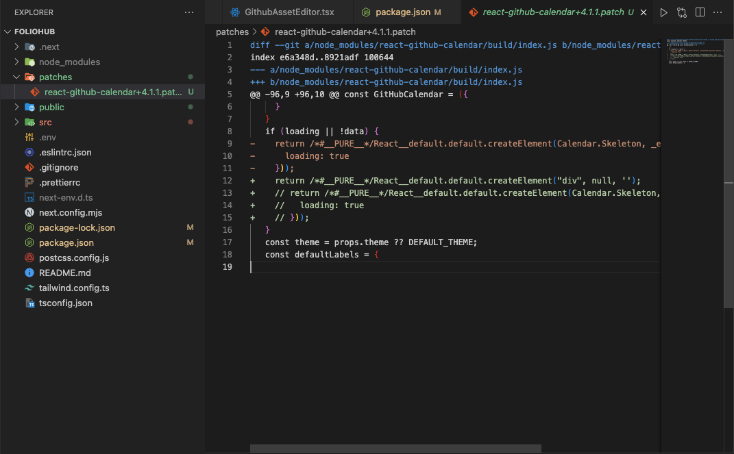node_modules에서 수정한 내용을 patches 폴더 안에서 확인할 수 있다!