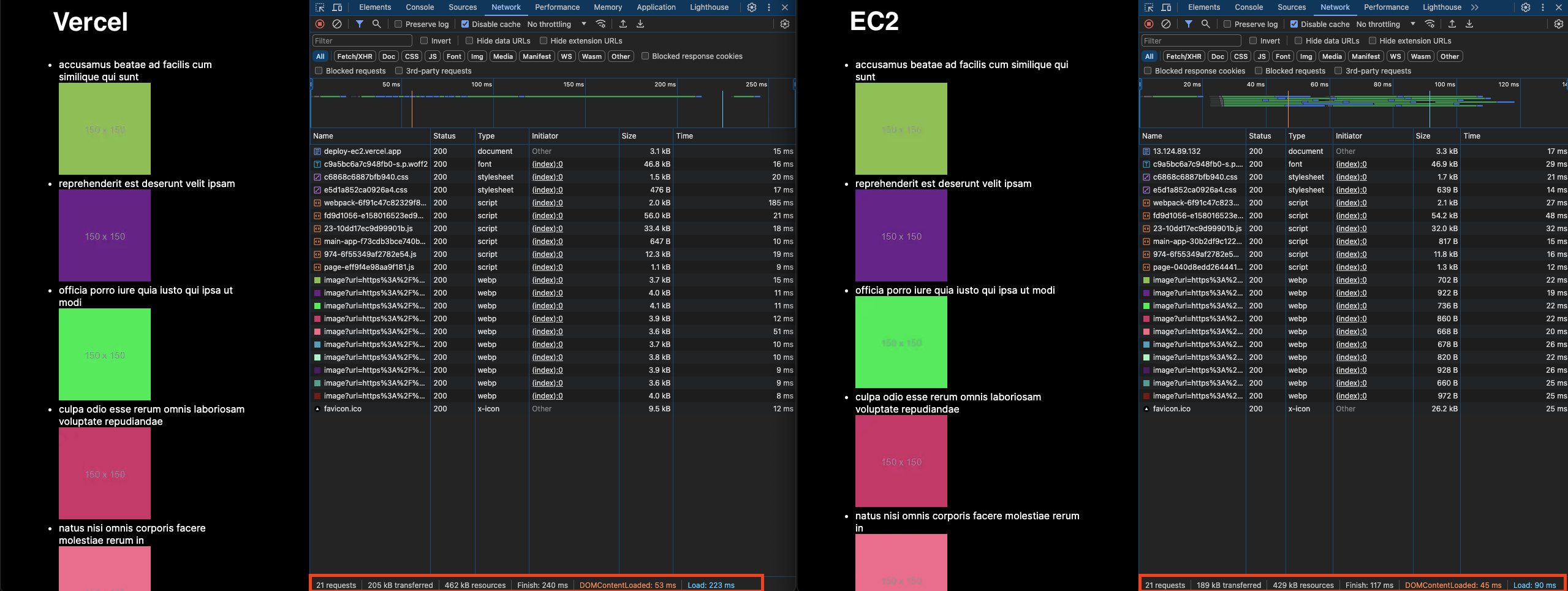 이 말을 확인해 보기 위해 같은 Next.js 프로젝트를 EC2와 Vercel에 각각 배포해 봤다.